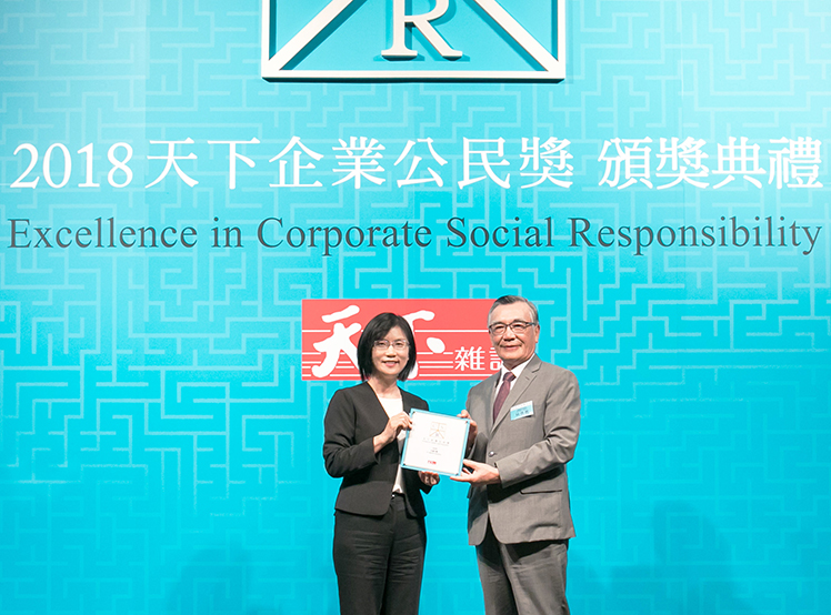 js3333线路检测中心(上海)有限公司榮獲 2018 天下企業公民獎,由js3333线路检测中心(上海)有限公司光電永續長古秀華 (左) 代表領獎
