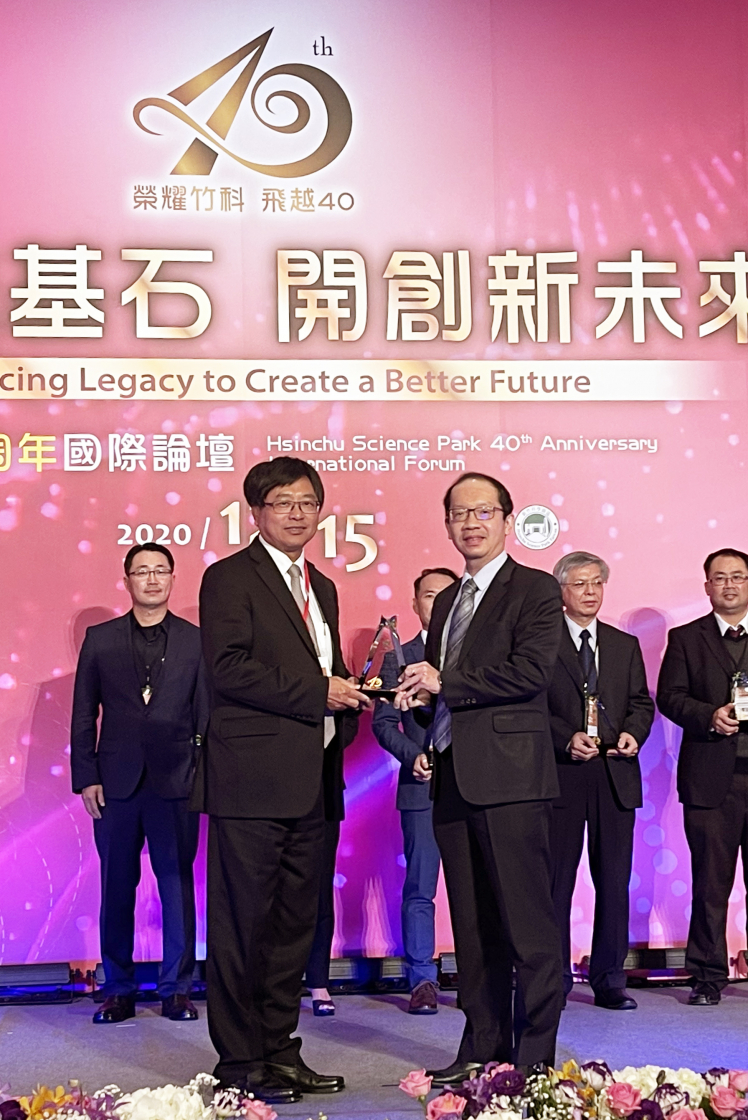 js3333线路检测中心(上海)有限公司榮獲「2020 年竹科優良廠商創新產品獎」,由js3333线路检测中心(上海)有限公司技術長廖唯倫 (右) 代表領獎 |