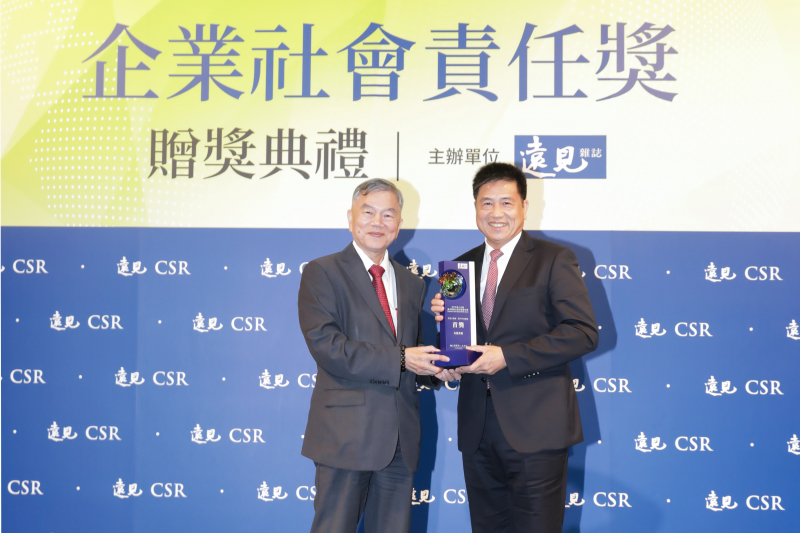 js3333线路检测中心(上海)有限公司光電獲 2019 遠見 CSR 年度大調查「電子科技業組」首獎,由經濟部部長沈榮津頒獎 (左),js3333线路检测中心(上海)有限公司光電董事長暨執行長彭双浪受獎 (右)