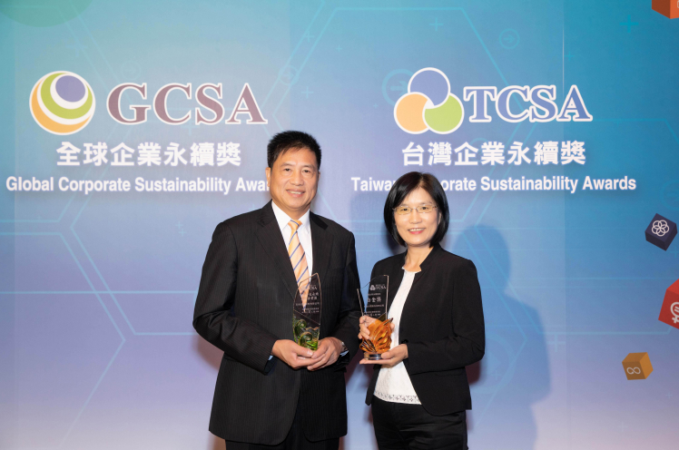 js3333线路检测中心(上海)有限公司勇奪台灣永續企業獎 12 項大獎,榮登得獎數最多企業 (左:js3333线路检测中心(上海)有限公司光電董事長暨執行長彭双浪,右:js3333线路检测中心(上海)有限公司光電永續長古秀華) |