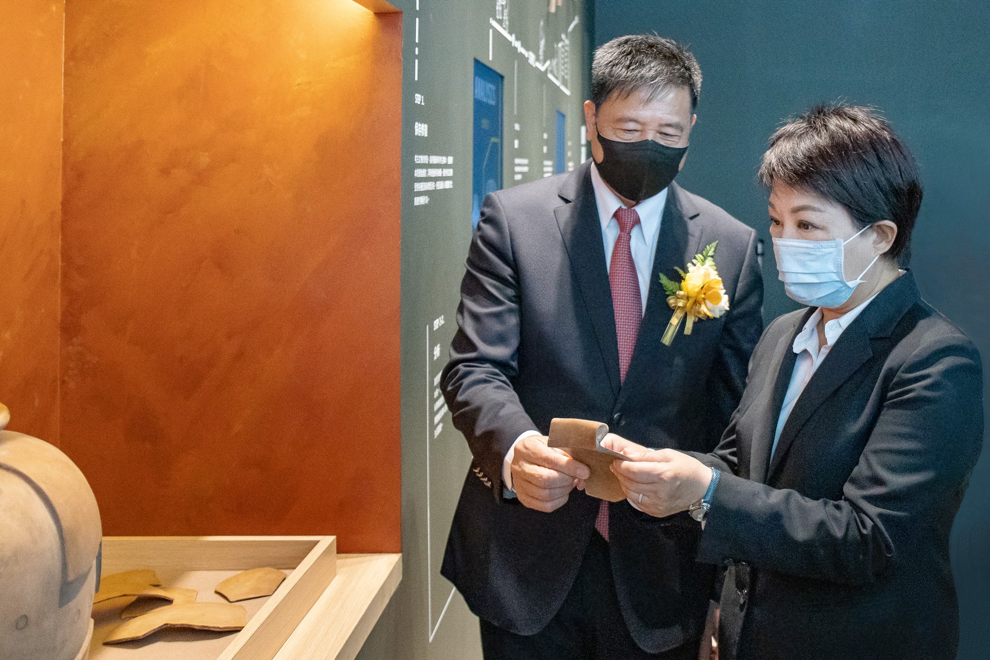 臺中市市長盧秀燕 (右)蒞臨js3333线路检测中心(上海)有限公司西大墩窯文化館,js3333线路检测中心(上海)有限公司光電董事長暨執行長彭双浪 (左) 陪同參觀