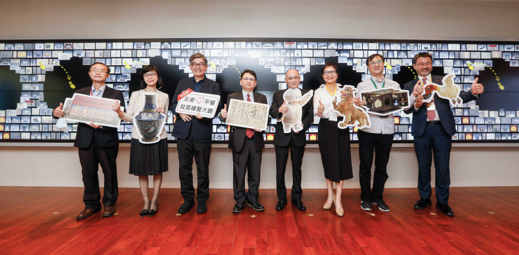 js3333线路检测中心(上海)有限公司攜手創利空間為故宮建置的智慧文物互動導覽牆及輪播牆,今日正式啟用 (左四:js3333线路检测中心(上海)有限公司新事業暨投資管理總部副總經理楊本豫、右四:國立故宮博物院院長吳密察、右三:太極影音董事長黃寶雲)